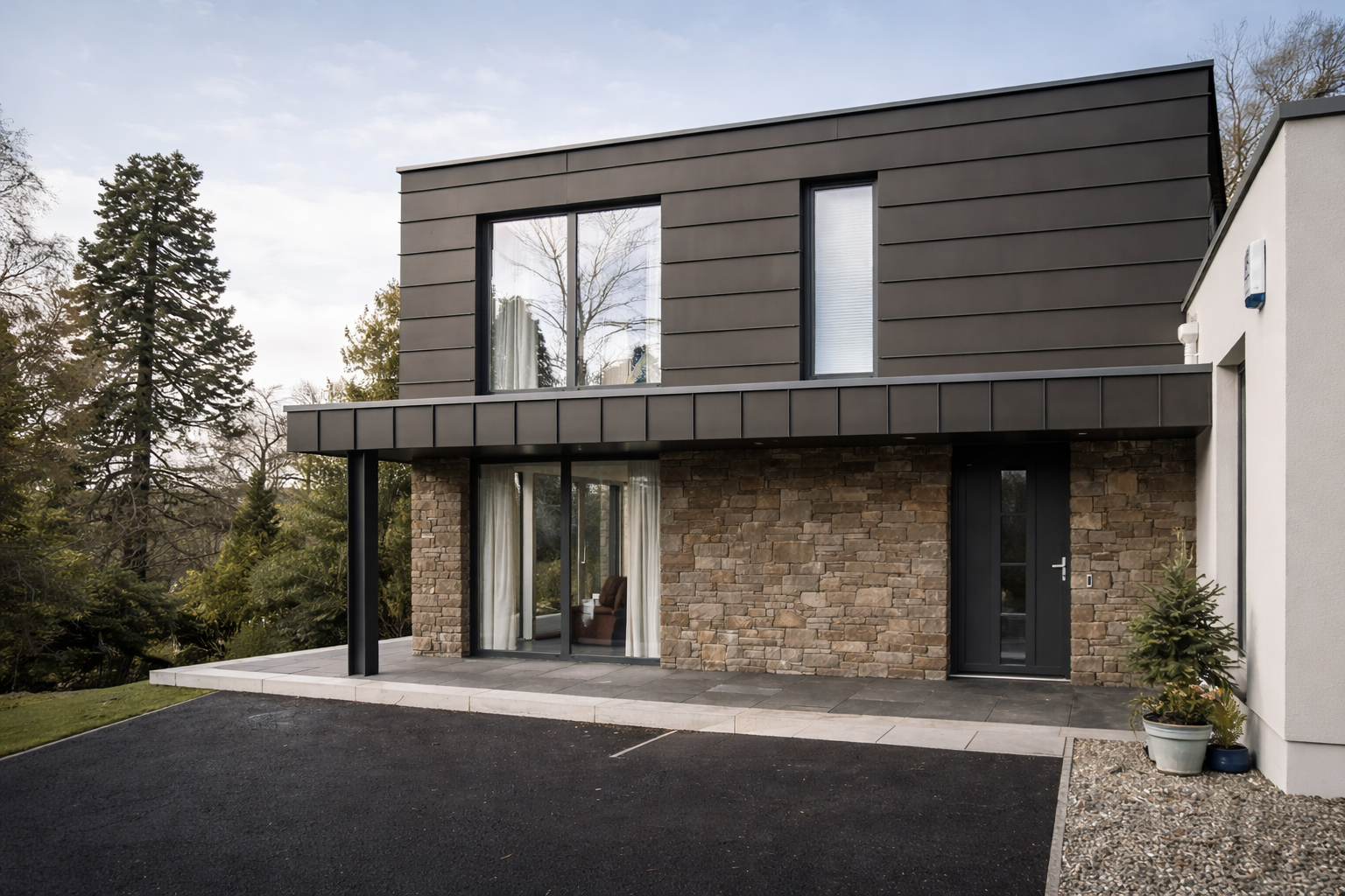 This project was a challenge. To design and build a contemporary family home on a prominent site within an existing conservation area.
